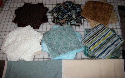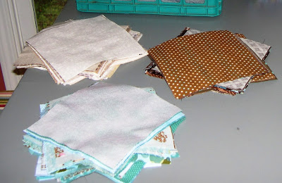 I’ve got 4 brown ones, 6 aqua ones, and 6 cream/light brown ones. The next step is to CHOP THEM UP AGAIN. That is the most depressing part of the Disappearing Nine Patch quilt (well, mostly it’s the ironing you have to do as a result of that) - you divide these blocks into quarters, twist two parts, and then sew them back to together. Frankenquilt-style. This will all become clearer in Progress Report #4, I hope.